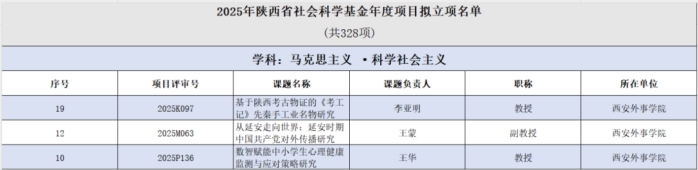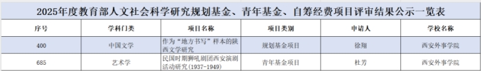 近日,2025年度教育部人文社会科学研究项目与陕西省哲学社会科学基金项目立项名单相继公示,我院科研工作在两大赛场均表现卓越,共斩获5项重磅课题,立项总数及占比均高居全校首位,充分彰显了我院在人文社科领域的雄厚实力与强劲发展势头!
